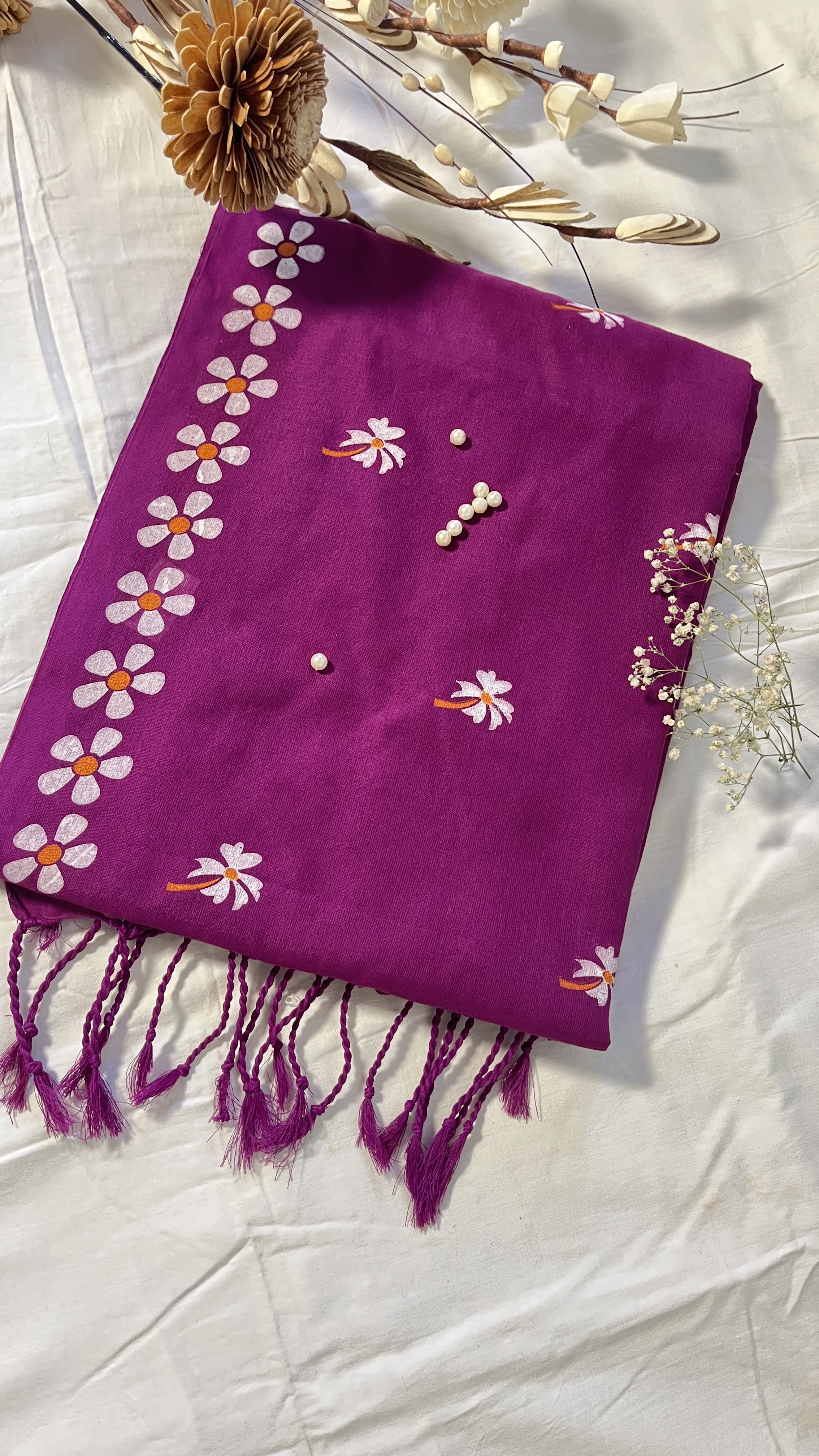 Linen Saree with Floral Print