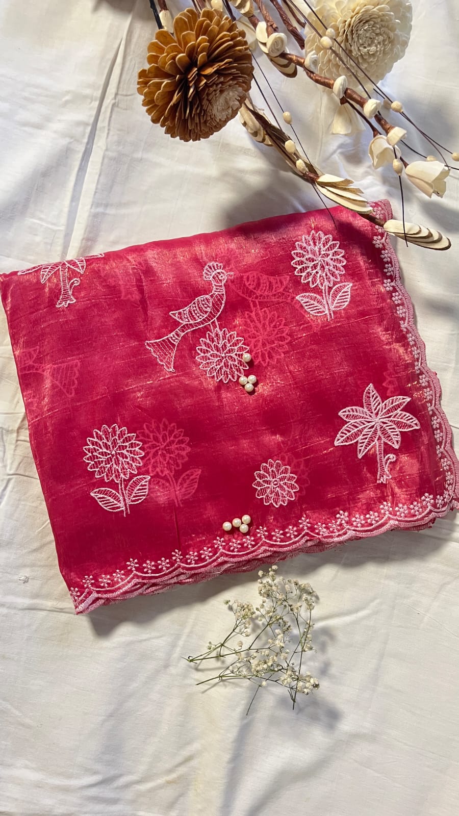 Tissue Organza Saree with White Woven Embroidery