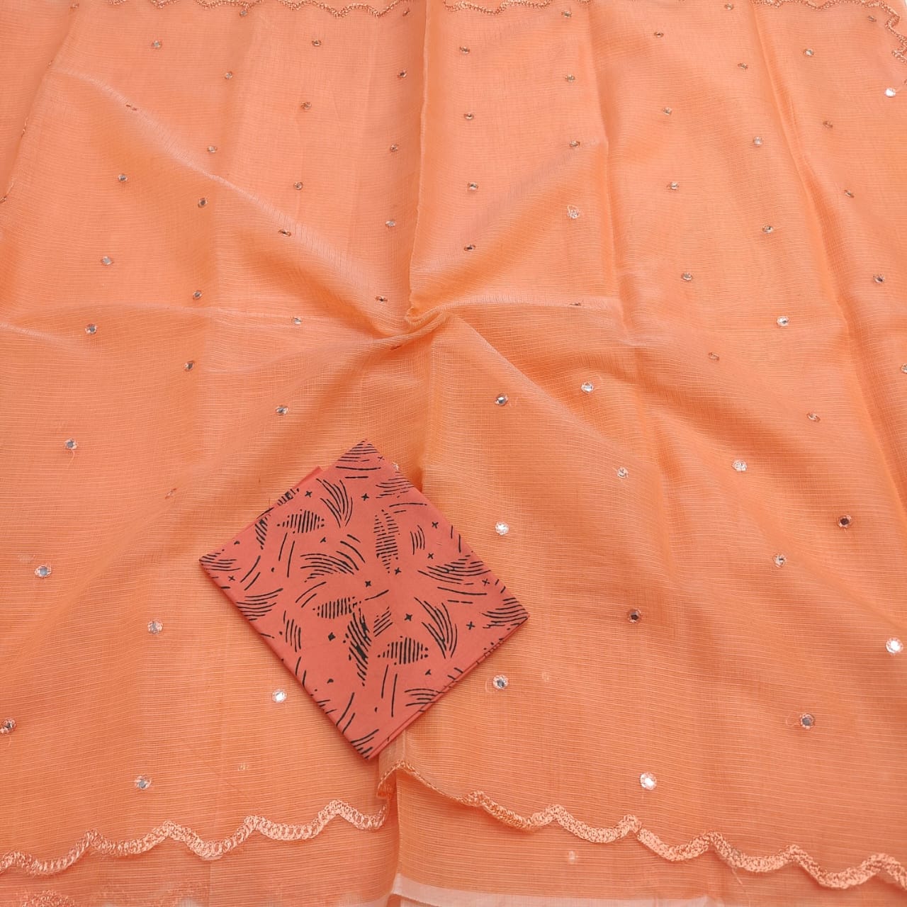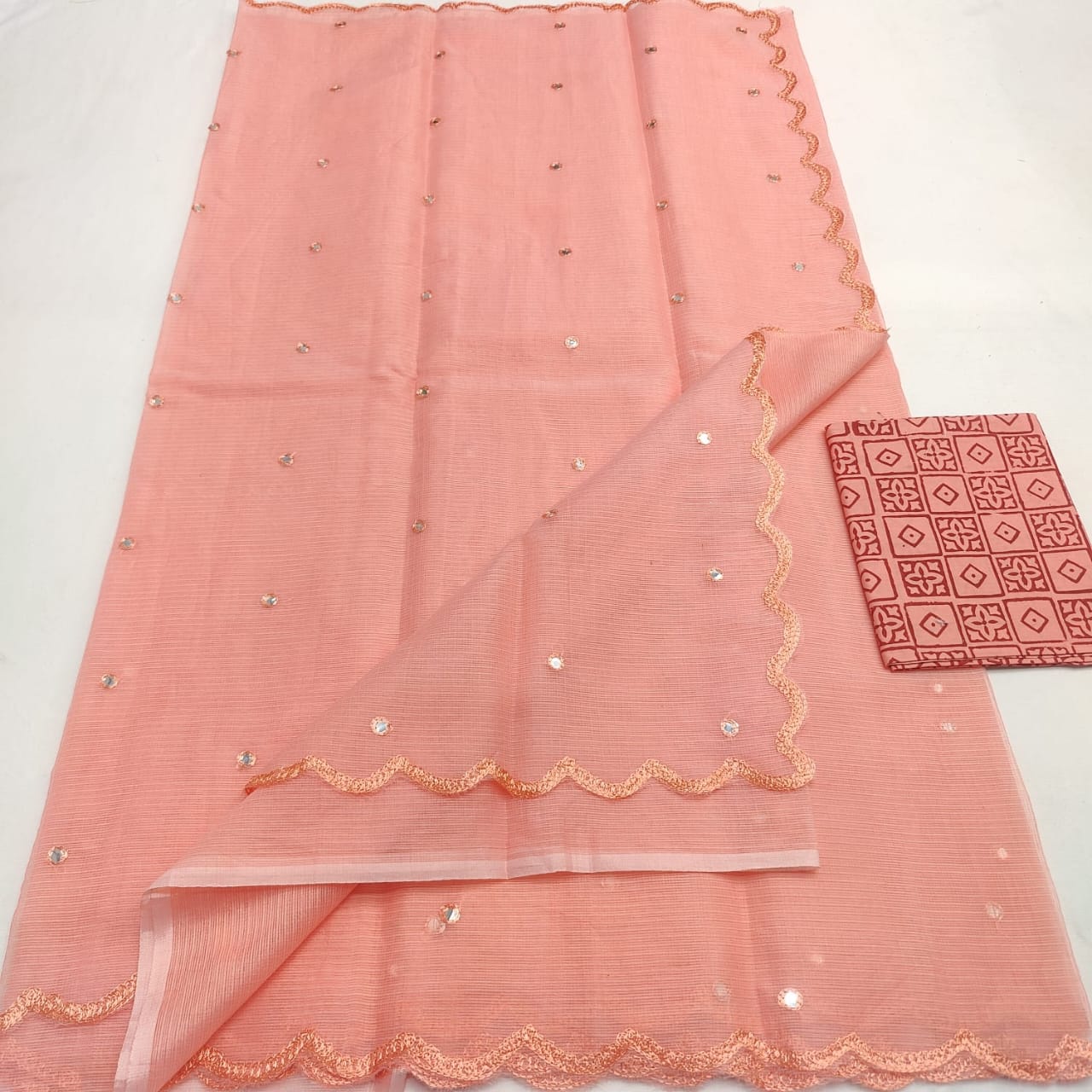●Pastel Kota Doria with elegant mirror Aari work
