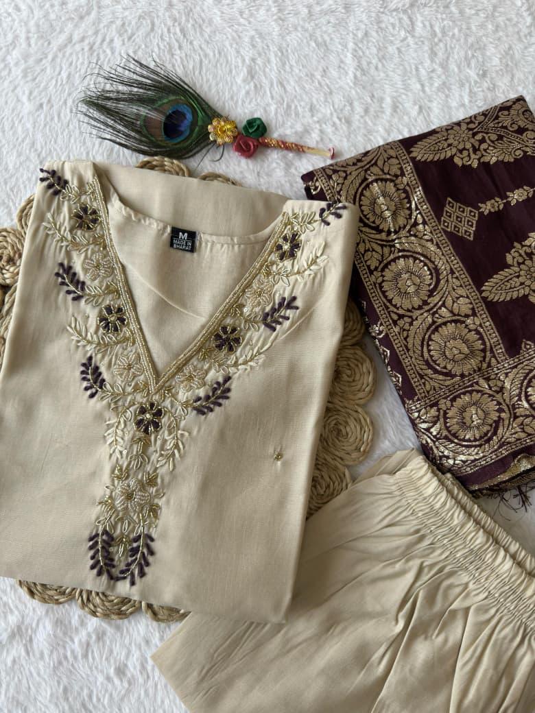 Cream Colour Designer Kurti Set