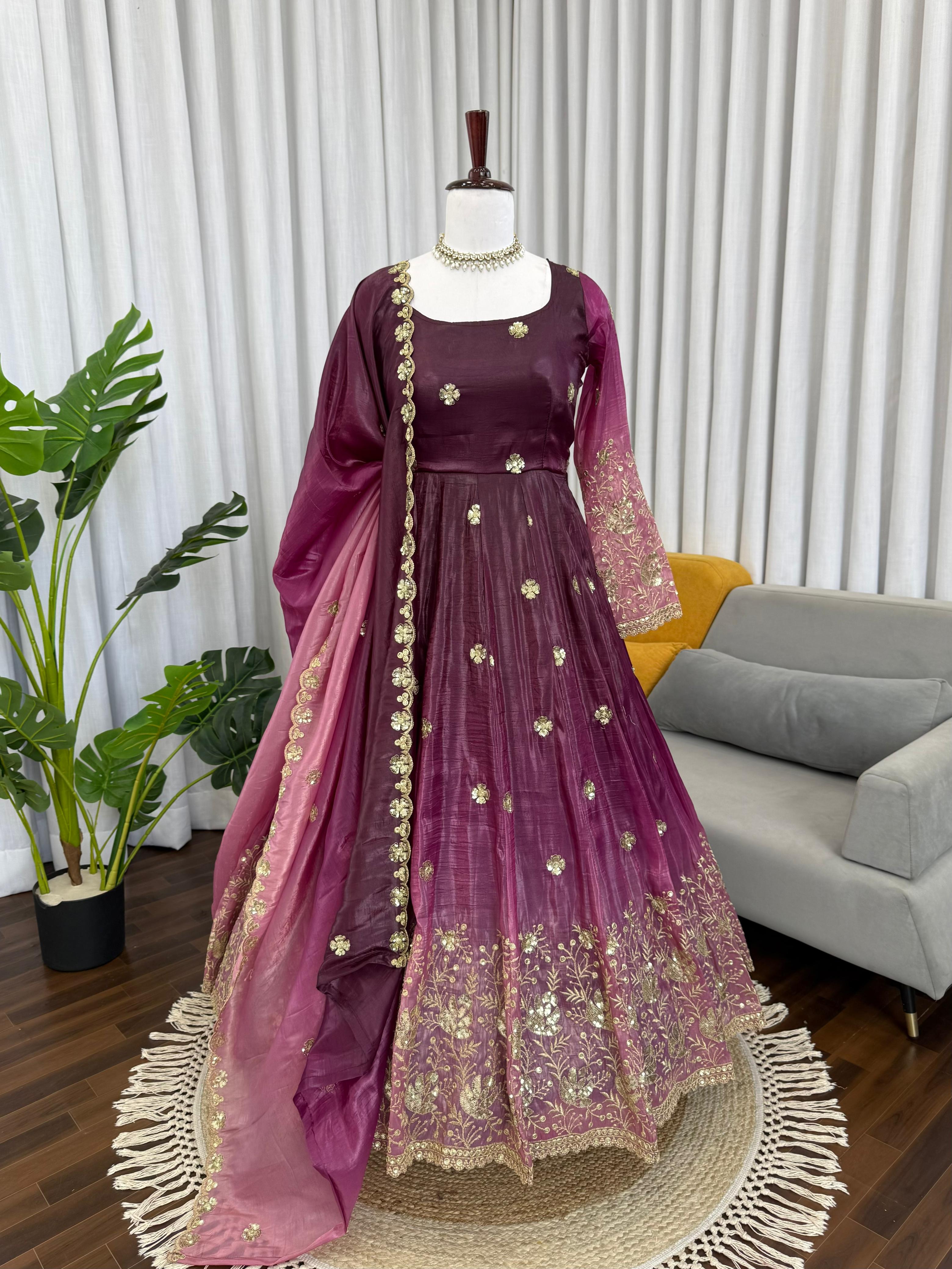 Chinon Silk Anarkali Suit